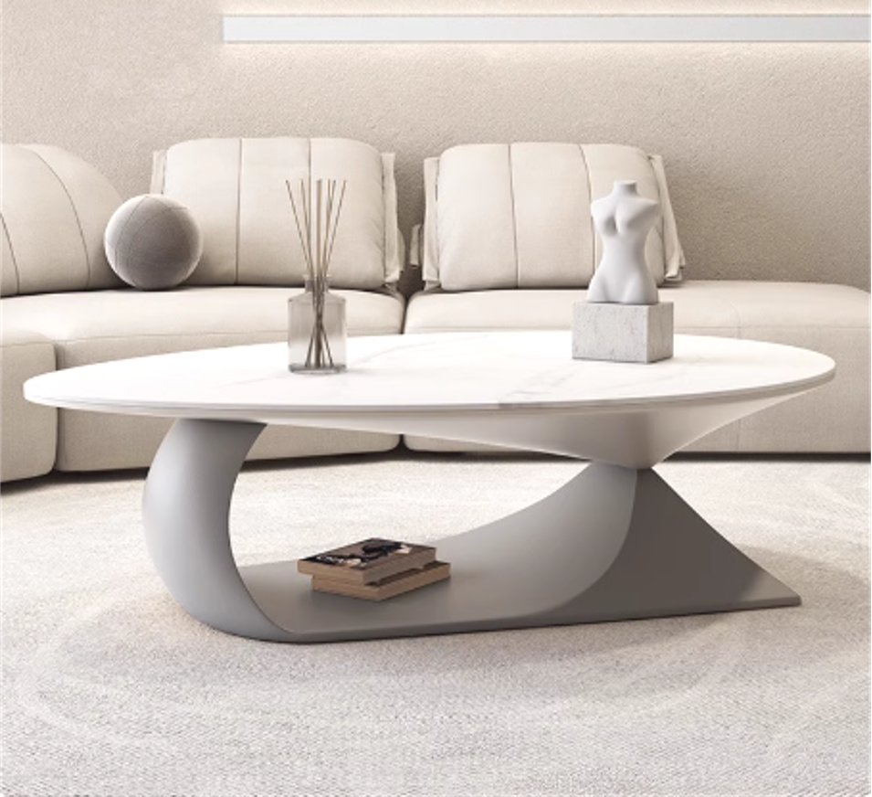 简约现代椭圆形岩板茶几
