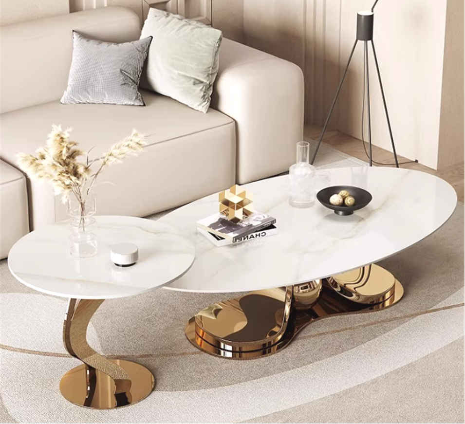 椭圆形岩板轻奢茶几